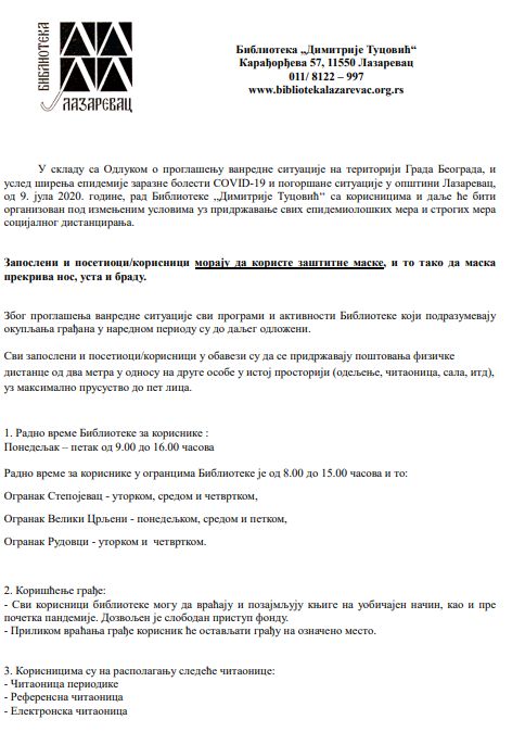 KАKО БИСМО МАKСИМАЛНО ЗАШТИТИЛИ ВАШЕ И ЗДРАВЉЕ НАШИХ БИБЛИОТЕКАРА ПРЕПОРУЧУЈЕМО ВАМ ДА: